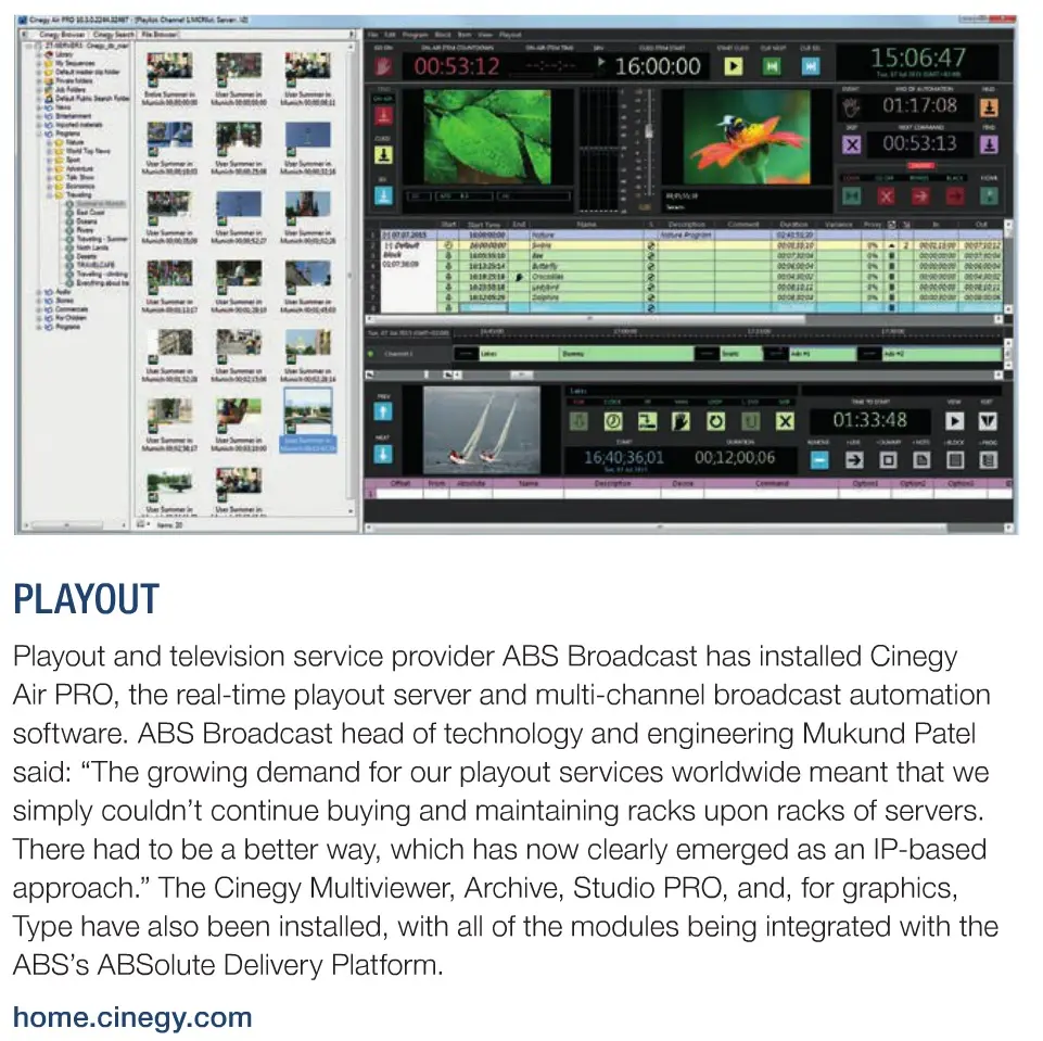 Read the Article – ABS Broadcast installs Cinegy Software.