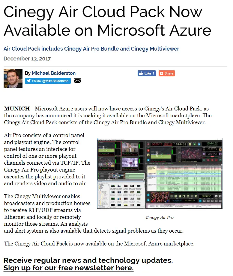 Cinegy Air Cloud Pack now available on Microsoft Azure